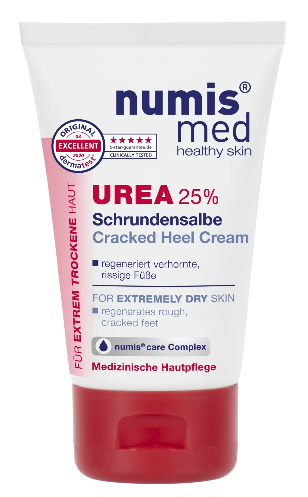 Special care for very cracked and callused feet. The numis® med UREA 25% Cracked Heel Cream is a rich, effective formula. With 25% urea and the numis® care Complex of active ingredients it adds moisture and intensive care. Used regularly, it helps prevent new cracks in the heels. For noticeably soft, smooth feet. Can also be used to support treatment for atopic eczema, diabetes and psoriasis.